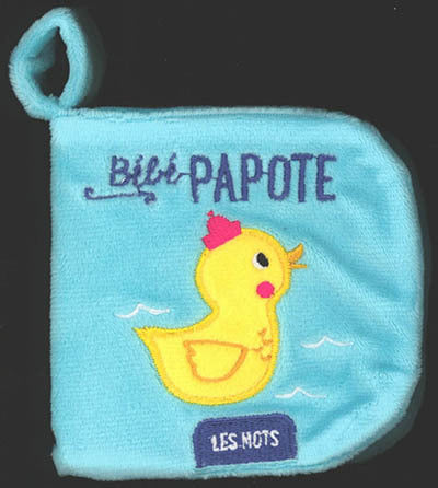 Sous une couverture douce, un livre pour apprendre de nouveaux mots : un livre, une voiture, un ballon, entre autres.