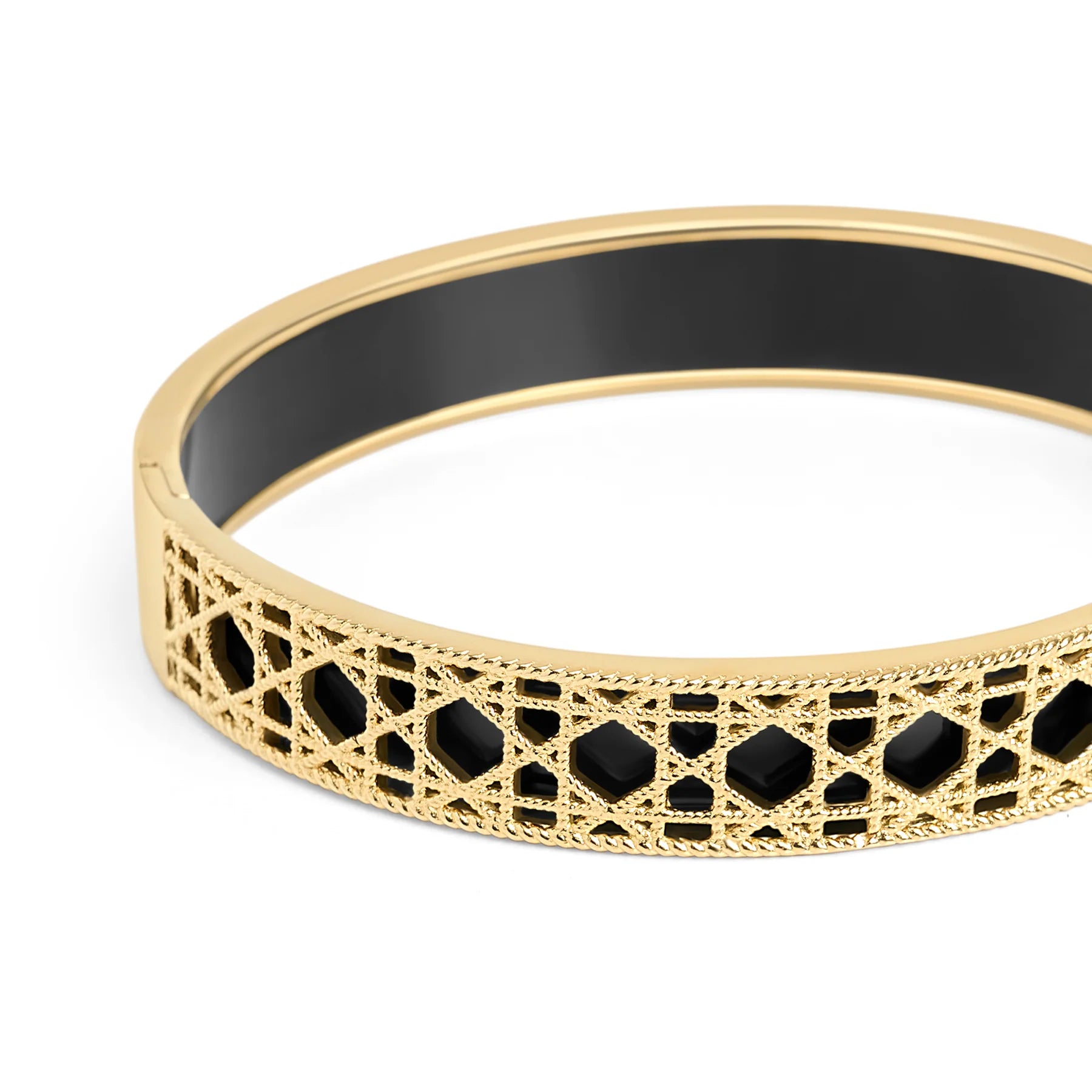 Bracelet jonc ornemental Noor en acier inoxydable doré et noir