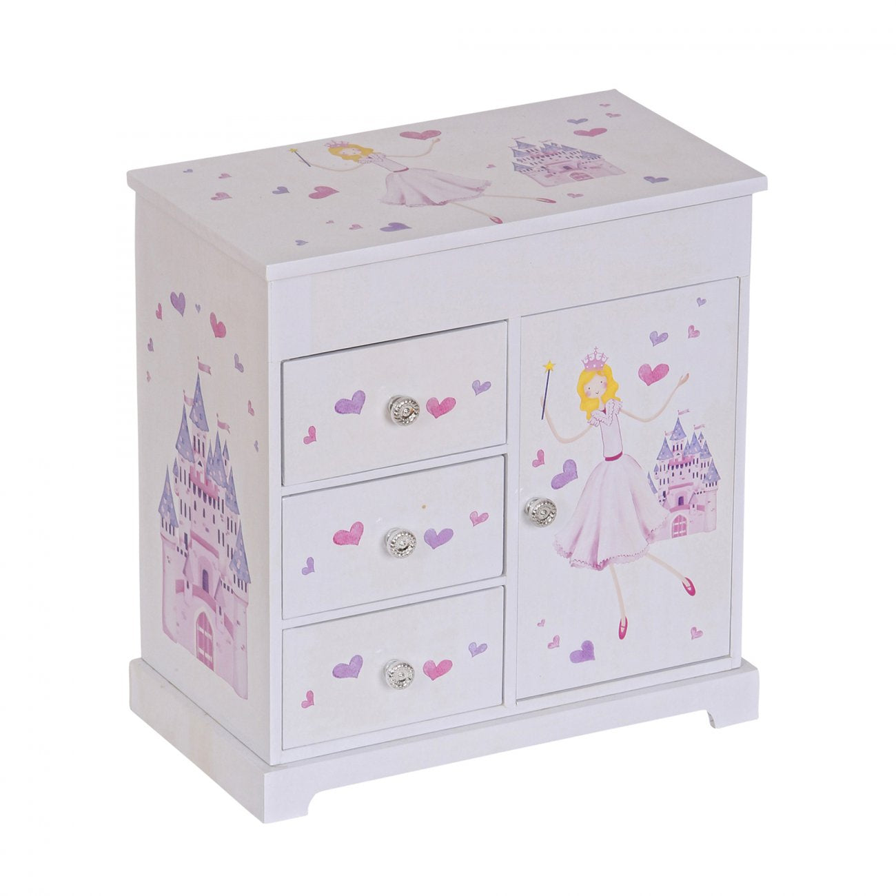 Le coffret à bijoux musical Adalyn de Mele & Co transforme chaque moment en un instant féérique. Orné de châteaux et de princesses dans des tons doux et rêveurs, il fera briller les yeux des enfants tout en offrant un espace raffiné pour leurs petits trésors. À l’ouverture, une ballerine blonde s’anime au son enchanteur de La Danse de la Fée Dragée, créant une ambiance magique digne d’un conte de fées.