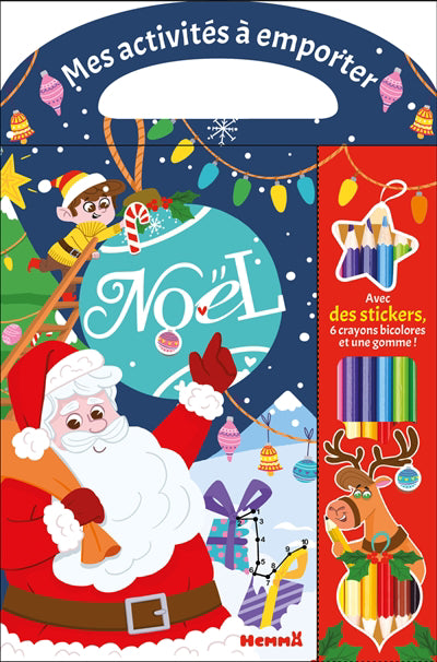 Un album muni d'une poignée proposant des activités et des stickers sur le thème de Noël.