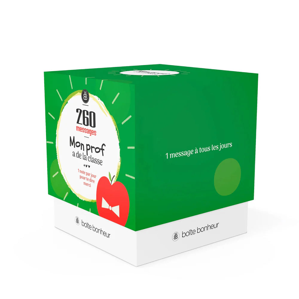 La Boîte Bonheur mon prof a de la classe, c’est 260 façons de témoigner sa gratitude à un enseignant en or.
