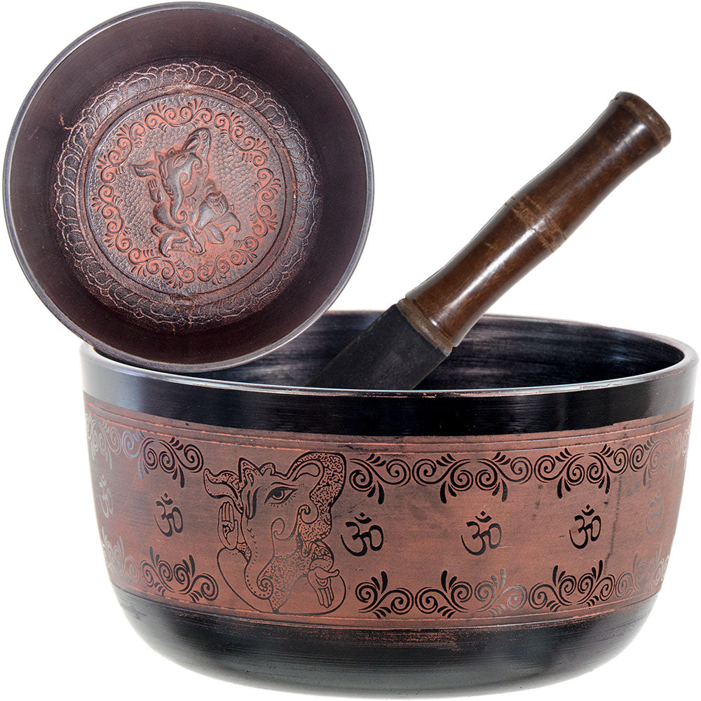 Bol chantant plat de 7,5 pouces avec maillet en bois - Ganesha