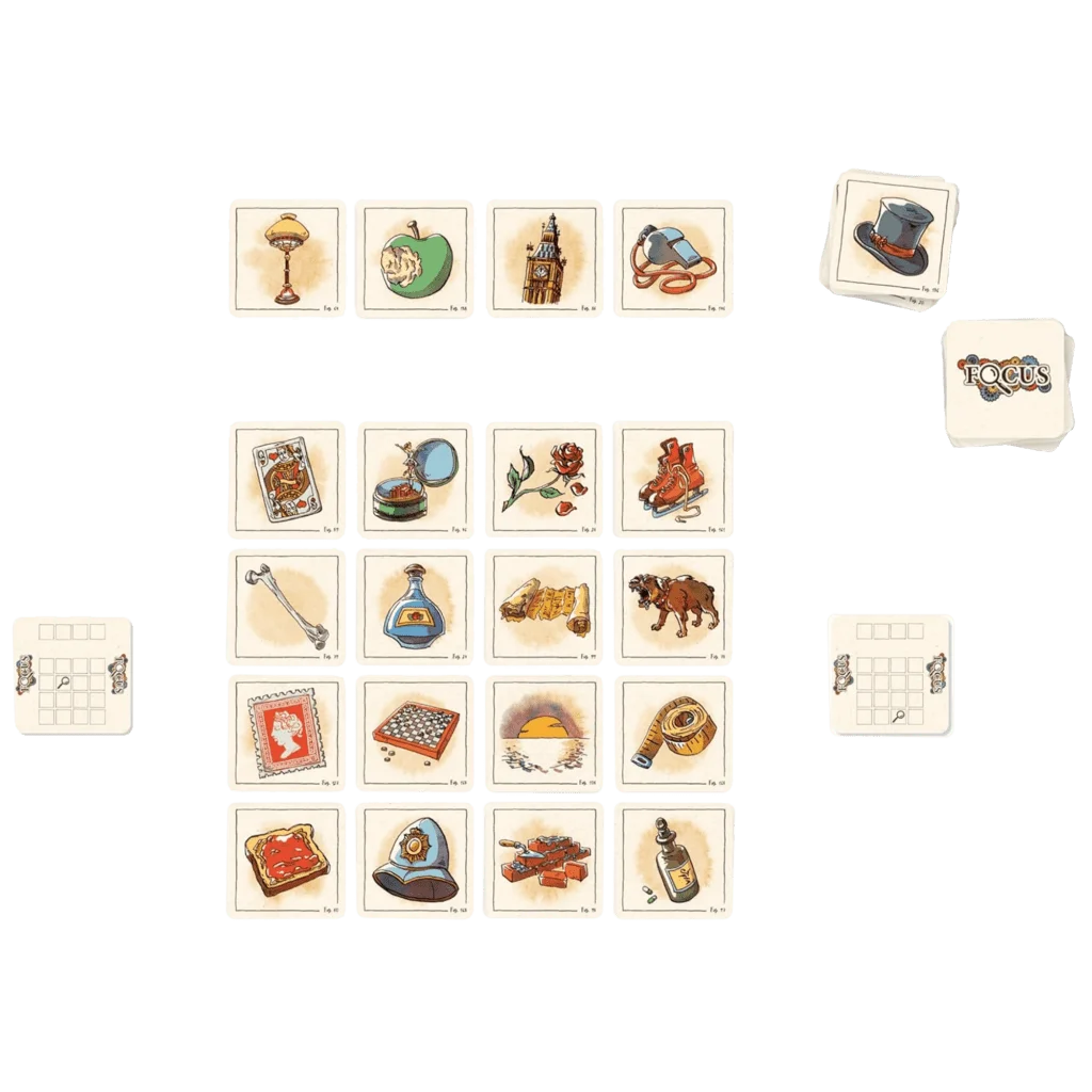 À tour de rôle, vous sélectionnez une carte pour donner un indice visuel. Attention : si vous prenez accidentellement la carte que votre partenaire devait deviner, la partie se termine ! Entre tension, intuition et fous rires, Focus est un véritable défi de communication silencieuse où l’observation et la déduction sont vos meilleurs alliés.