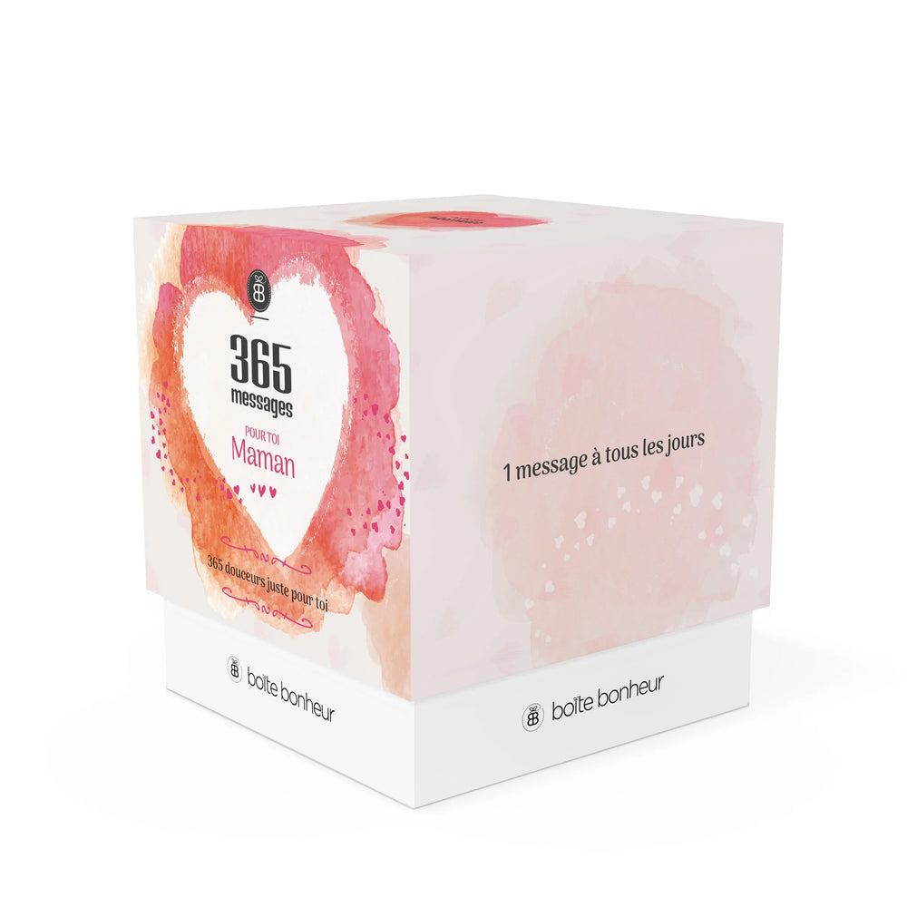 Les mots vous manquent pour dire à votre maman à quel point elle compte pour vous? Dites-lui de 365 manières différentes avec la boîte bonheur pour maman. Posologie: un par jour pendant un an.