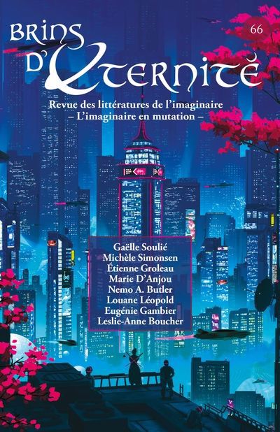 --Éditorial de Dave Dufour Nouvelles Renaissance de Gaëlle Soulié La Belle au Bois Jouant de Michèle Simonsen Ce qui a été d’Étienne Groleau À l’heure de votre mort de Marie D’Anjou San-nakji de Nemo A. Butler Chroniques Le futur de l’art avec Jean-Louis Trudel Chenille virtuelle et papillon trompe-l’œil avec Guillaume Voisine Espace Relève La partition interdite de Louane Léopold Le dernier concert du crépuscule d’Eugénie Gambier Souvenirs embrasés de Leslie-Anne Boucher Nos Coups de Coeur La mère des larves avec Marie Pelletier Guards! Guards! avec Frédérick Boulay Fantasy et féminismes avec Marie D’Anjou Le passage avec Catherine Parke Territoires enchantés, royaumes ensorcelés avec Jean-Louis Trudel.